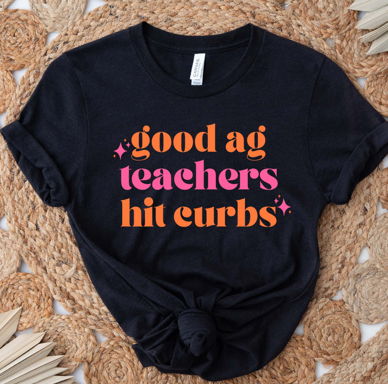 Good Ag Teachers Hit Curbs Pink and Orange– Bella Canvas T-Shirt – Wandering Maverick Boutique