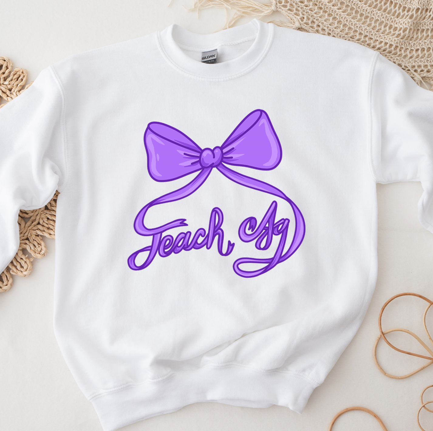 Teach Ag Bow Purple– Crewneck – Wandering Maverick Boutique