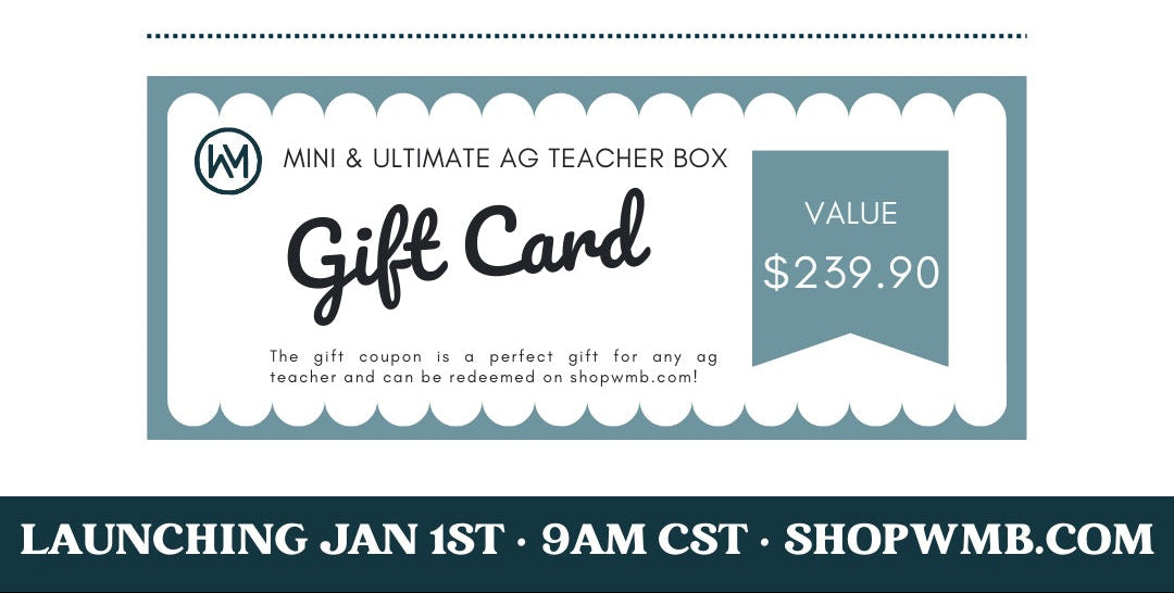 Give them the FULL Ag Teacher experience with the Ag Teacher Box Bundle Gift Card — enough to purchase BOTH boxes and enjoy every exclusive WMB item inside! 🎁🌾💛