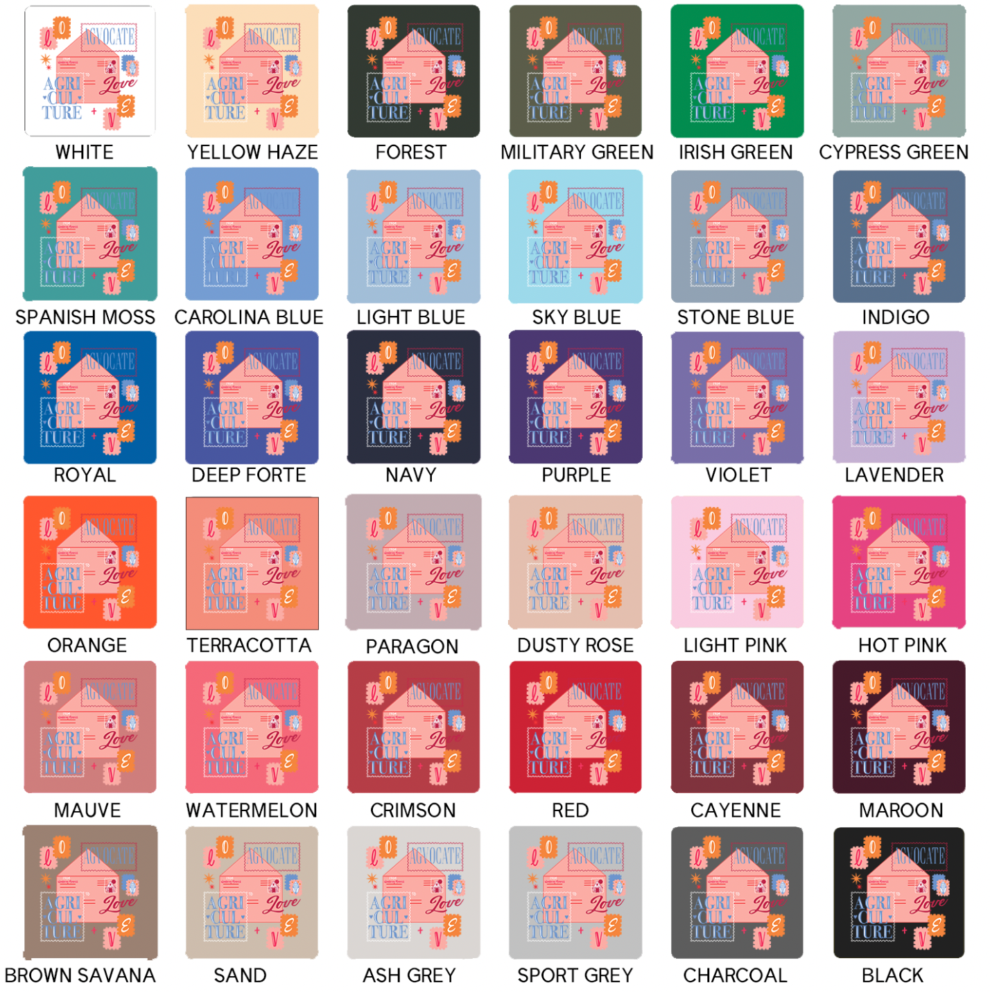 Black ink will not show on black garments; ink colors appear exactly as shown and cannot be customized, and colors may vary slightly from screen to screen as these are mockups of the final product.