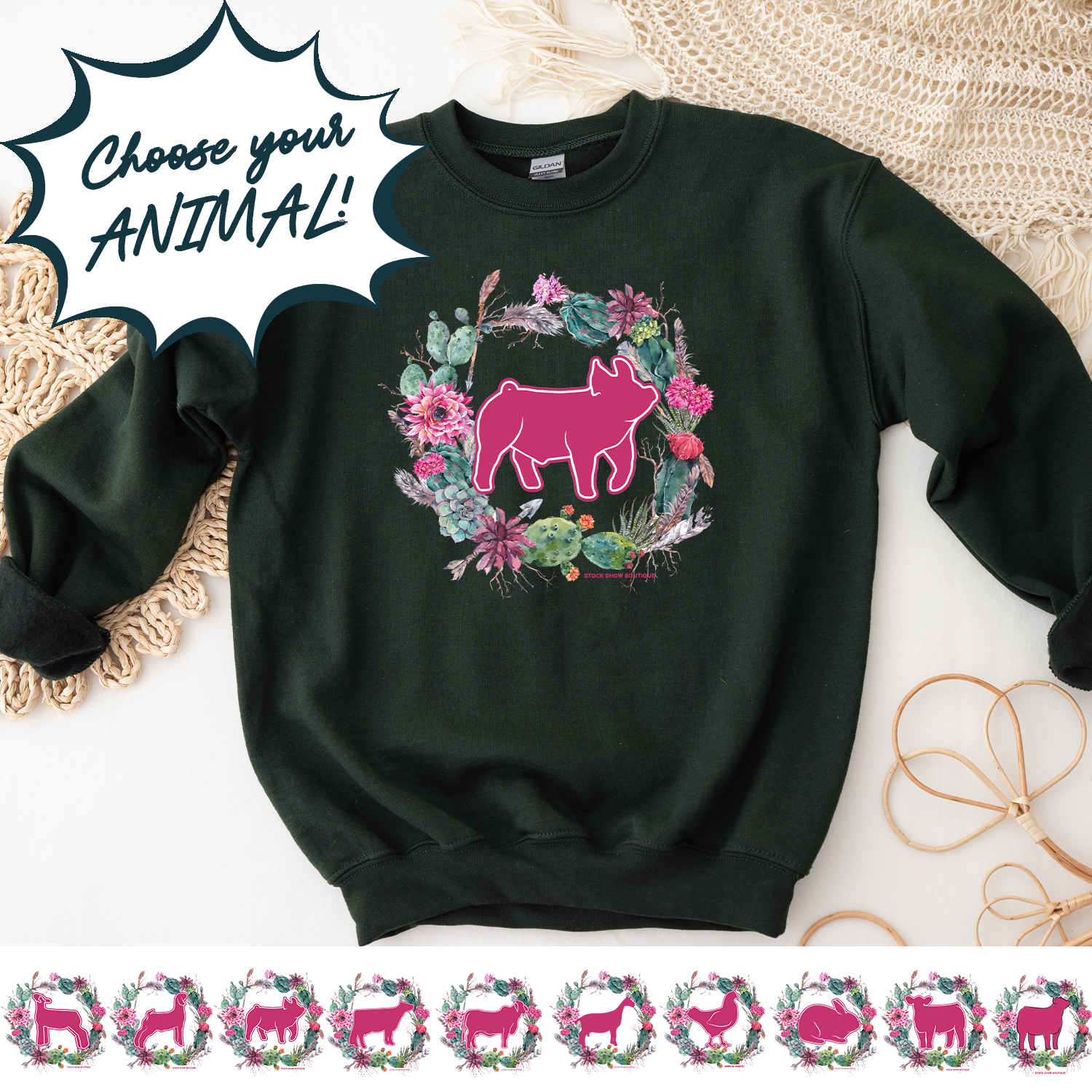 Cactus Wreath - Pick Your Animal – Crewneck – Wandering Maverick Boutique