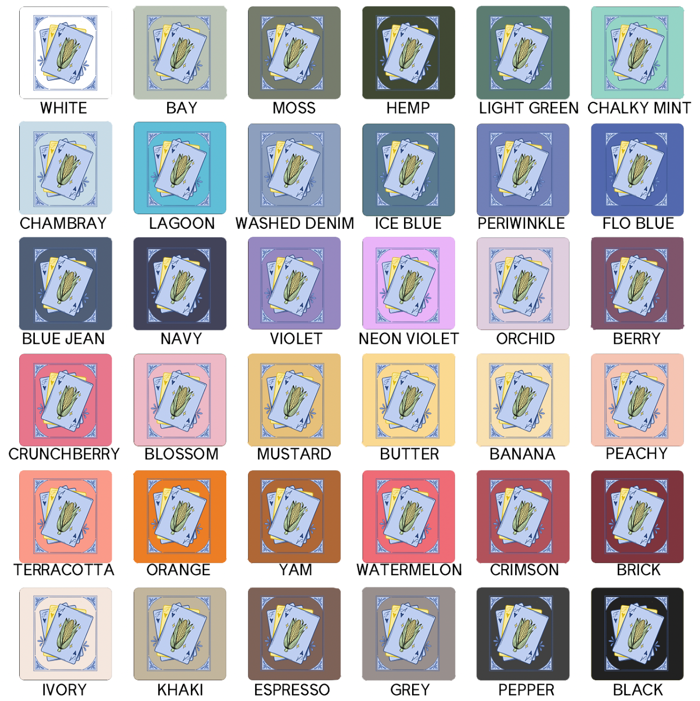 Black ink will not show on black garments; ink colors appear exactly as shown and cannot be customized, and colors may vary slightly from screen to screen as these are mockups of the final product.