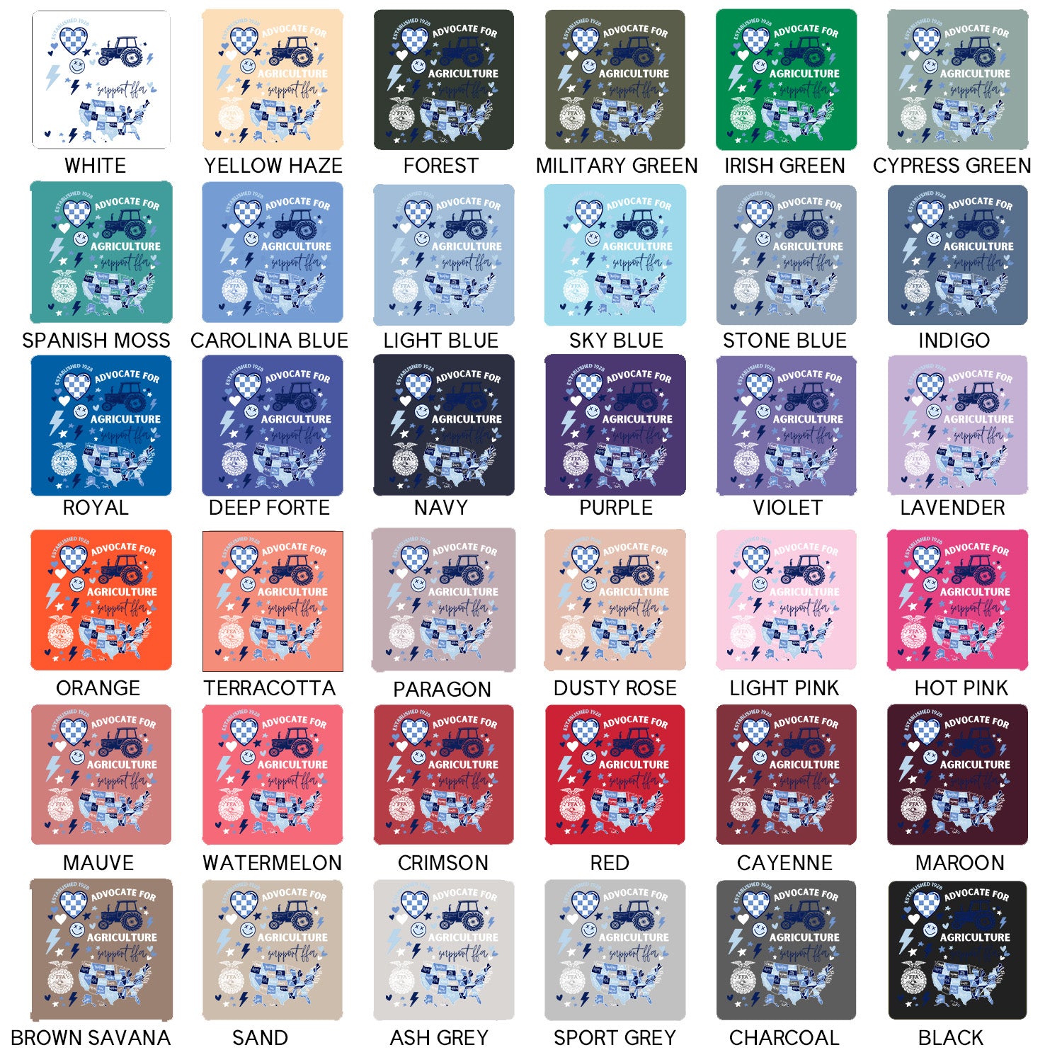Black ink will not show on black garments; ink colors appear exactly as shown and cannot be customized, and colors may vary slightly from screen to screen as these are mockups of the final product.
