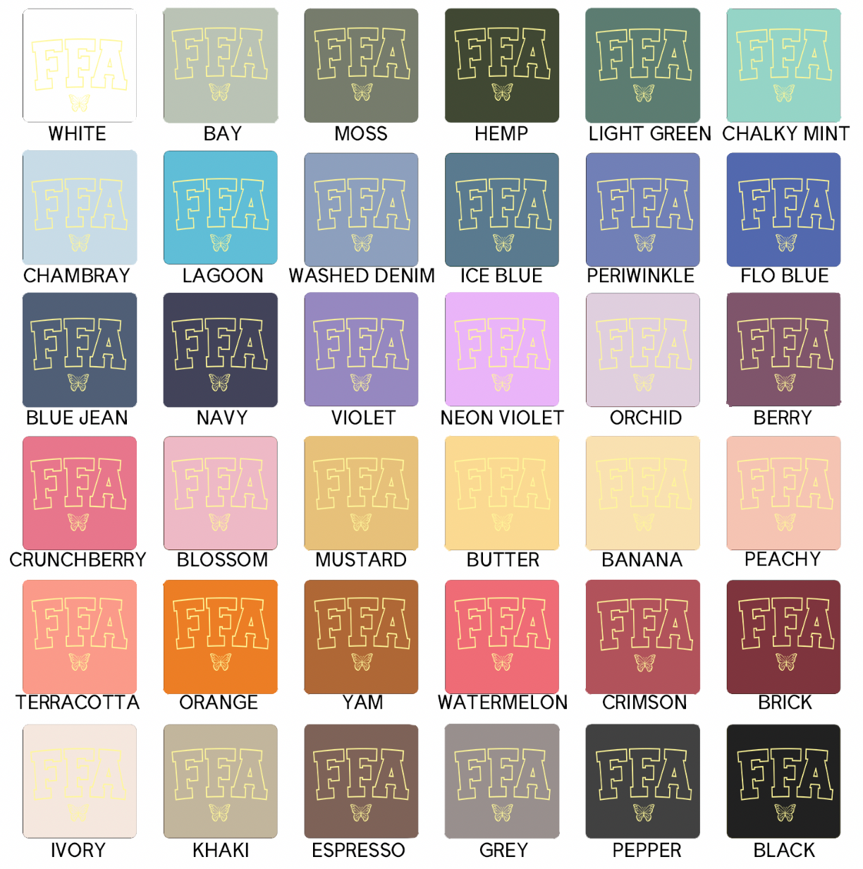 YELLOW BUTTERFLY FFA – Comfort Colors T-Shirt – Wandering Maverick Boutique