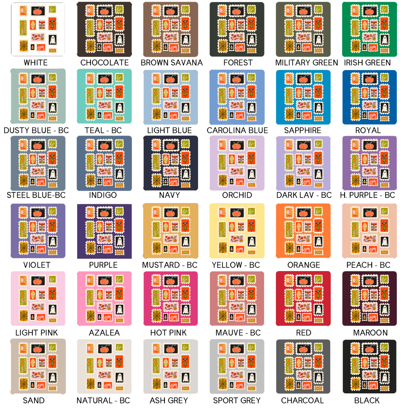 Black ink will not show on black garments; ink colors appear exactly as shown and cannot be customized, and colors may vary slightly from screen to screen as these are mockups of the final product.