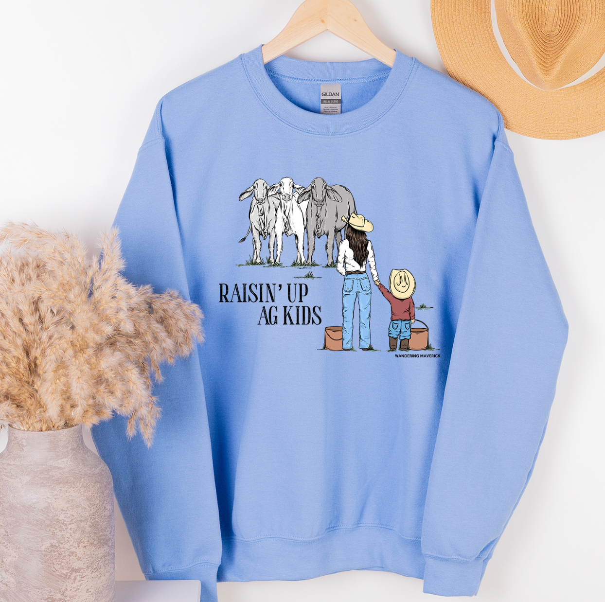 Raising Up Ag Kids Cattle– Crewneck – Wandering Maverick Boutique