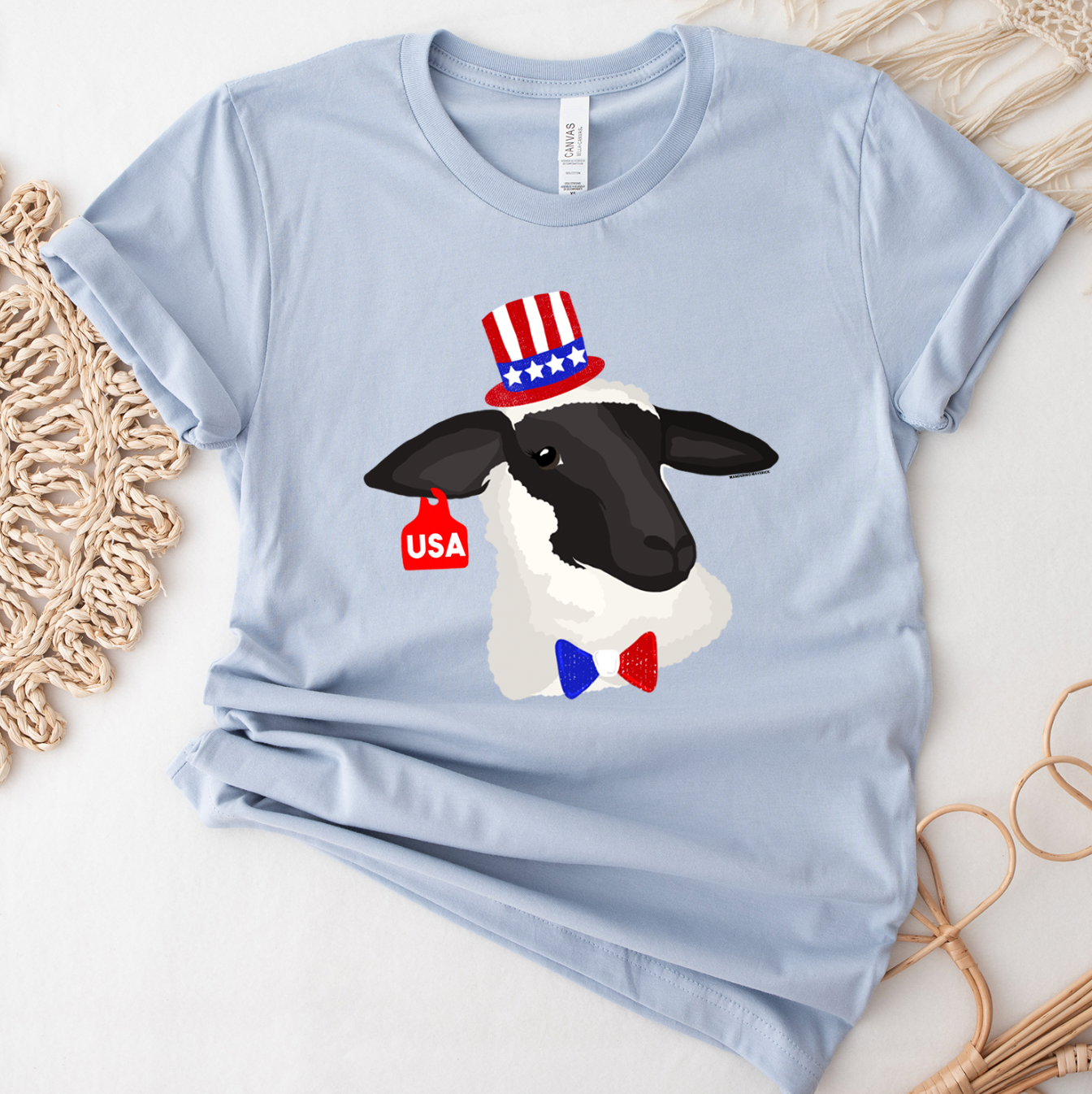 Red White and Blue Lamb– Bella Canvas T-Shirt – Wandering Maverick Boutique
