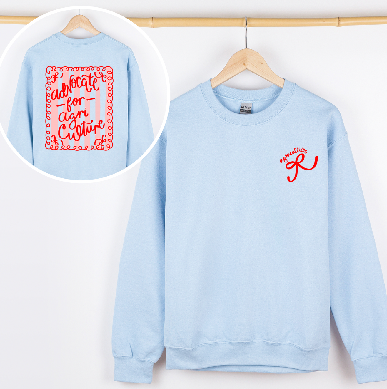 Advocate for Agriculture Stripes and Bows– Crewneck Front and Back – Wandering Maverick Boutique