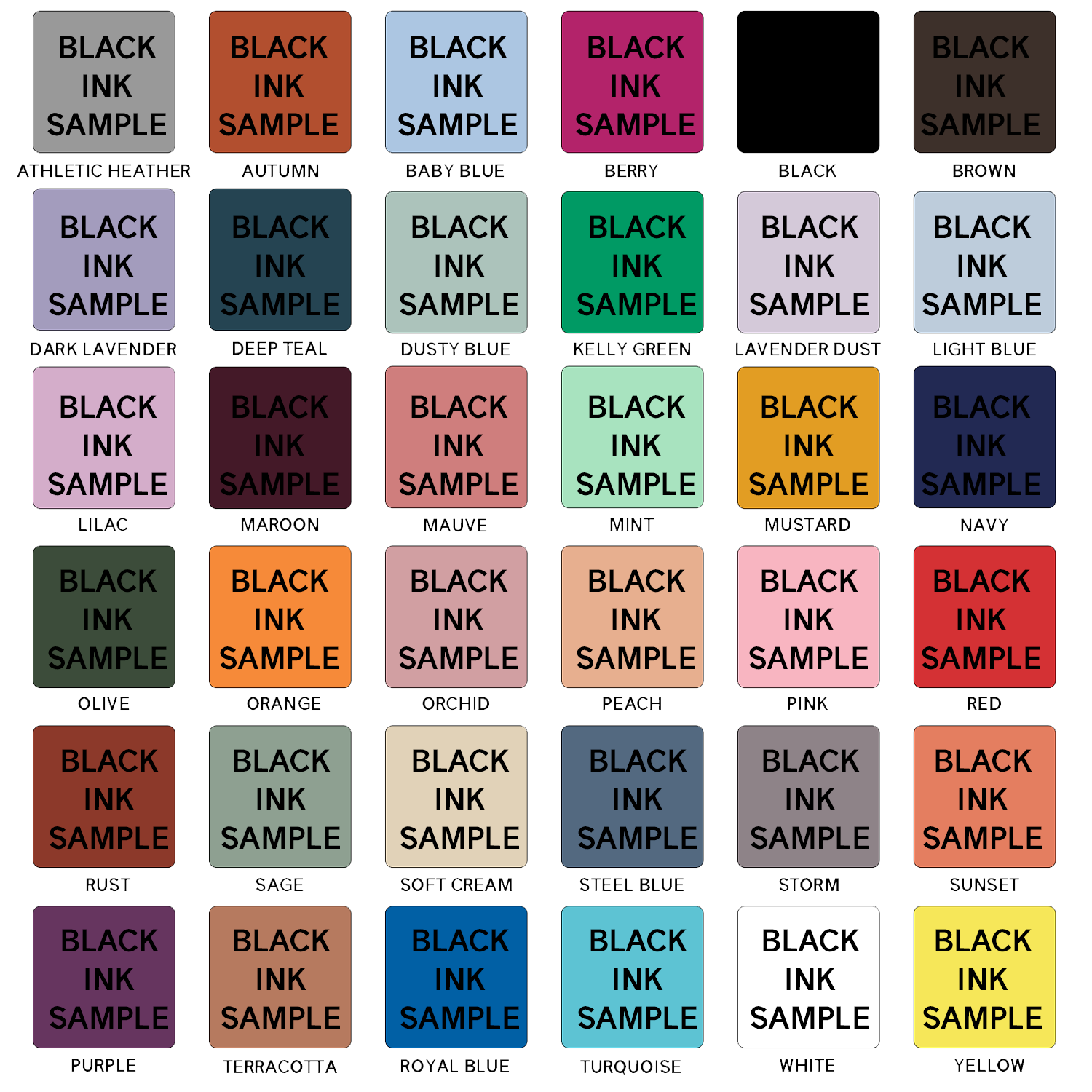 BLACK INK DOES NOT SHOW UP ON BLACK ITEMS. INK COLOR DOES NOT CHANGE!! INK COLOR IS AS PICTURED.