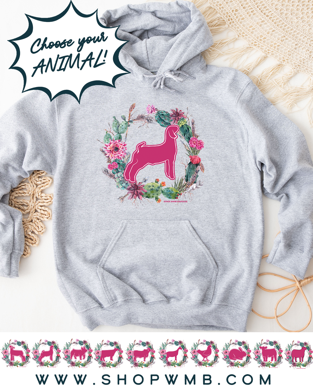 CACTUS WREATH ANIMALS - CHOOSE YOUR ANIMAL – Hoodie – Wandering Maverick Boutique