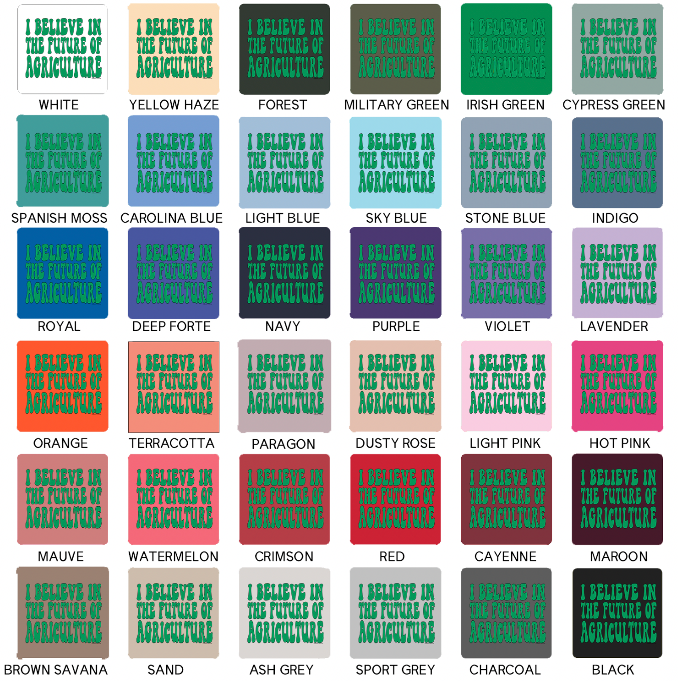 Black ink will not show on black garments; ink colors appear exactly as shown and cannot be customized, and colors may vary slightly from screen to screen as these are mockups of the final product.