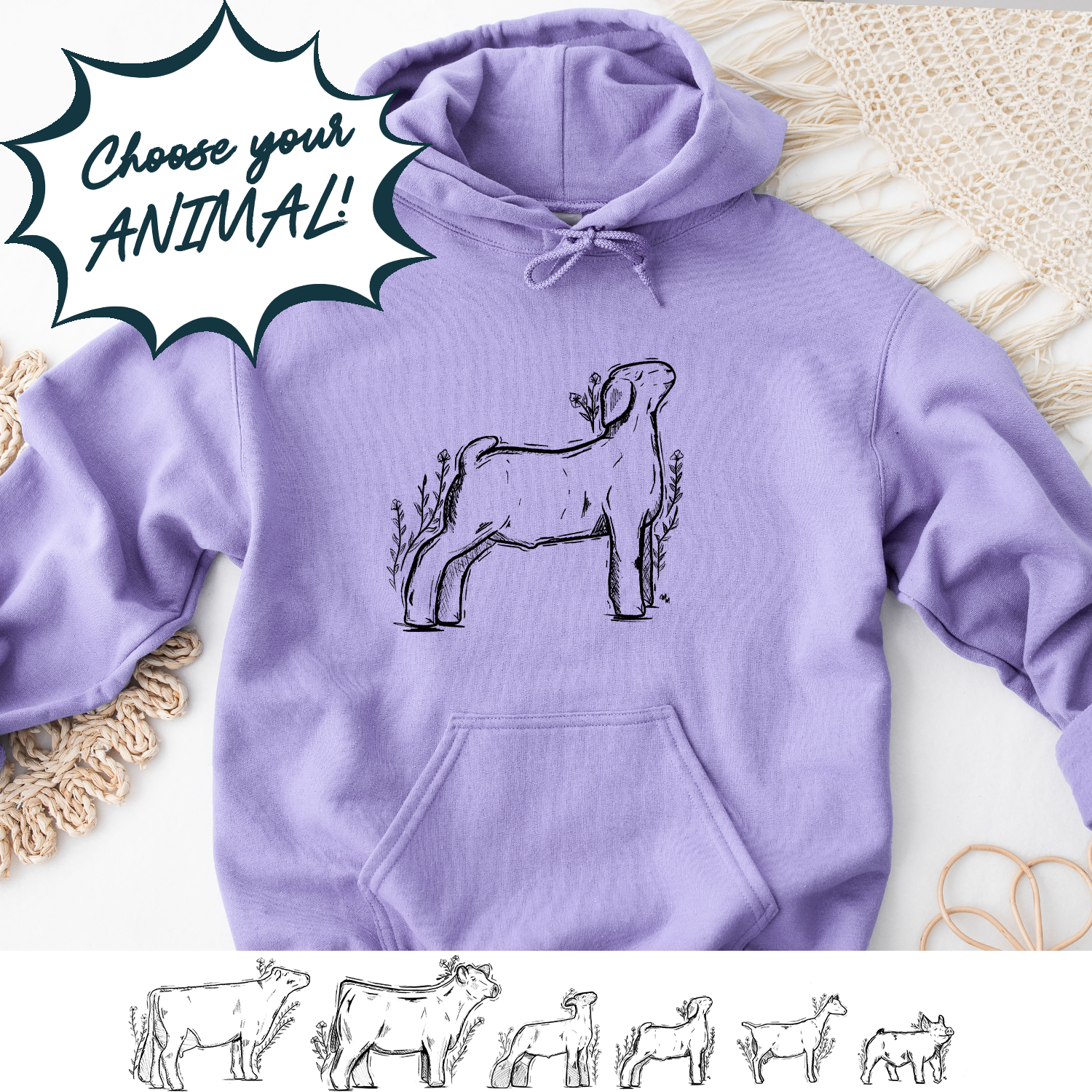 Floral Sketch Livestock - Pick Your Animal – Hoodie – Wandering Maverick Boutique