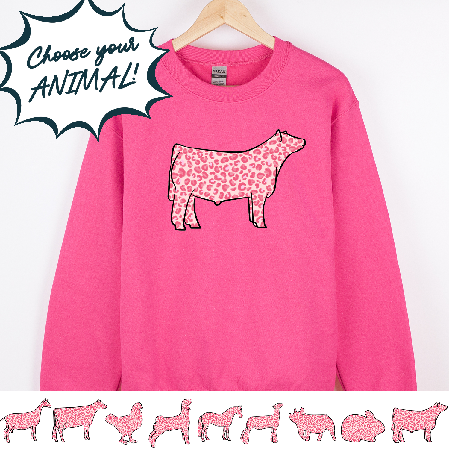 Pink Cheetah Animals - CHOOSE YOUR ANIMAL– Crewneck