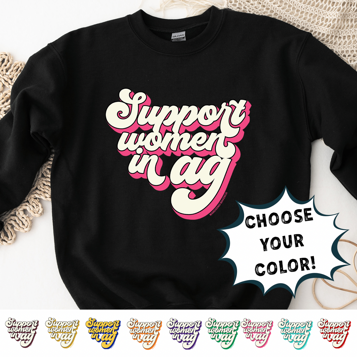 RETRO SUPPORT WOMEN IN AG - CHOOSE YOUR COLOR – Crewneck – Wandering Maverick Boutique