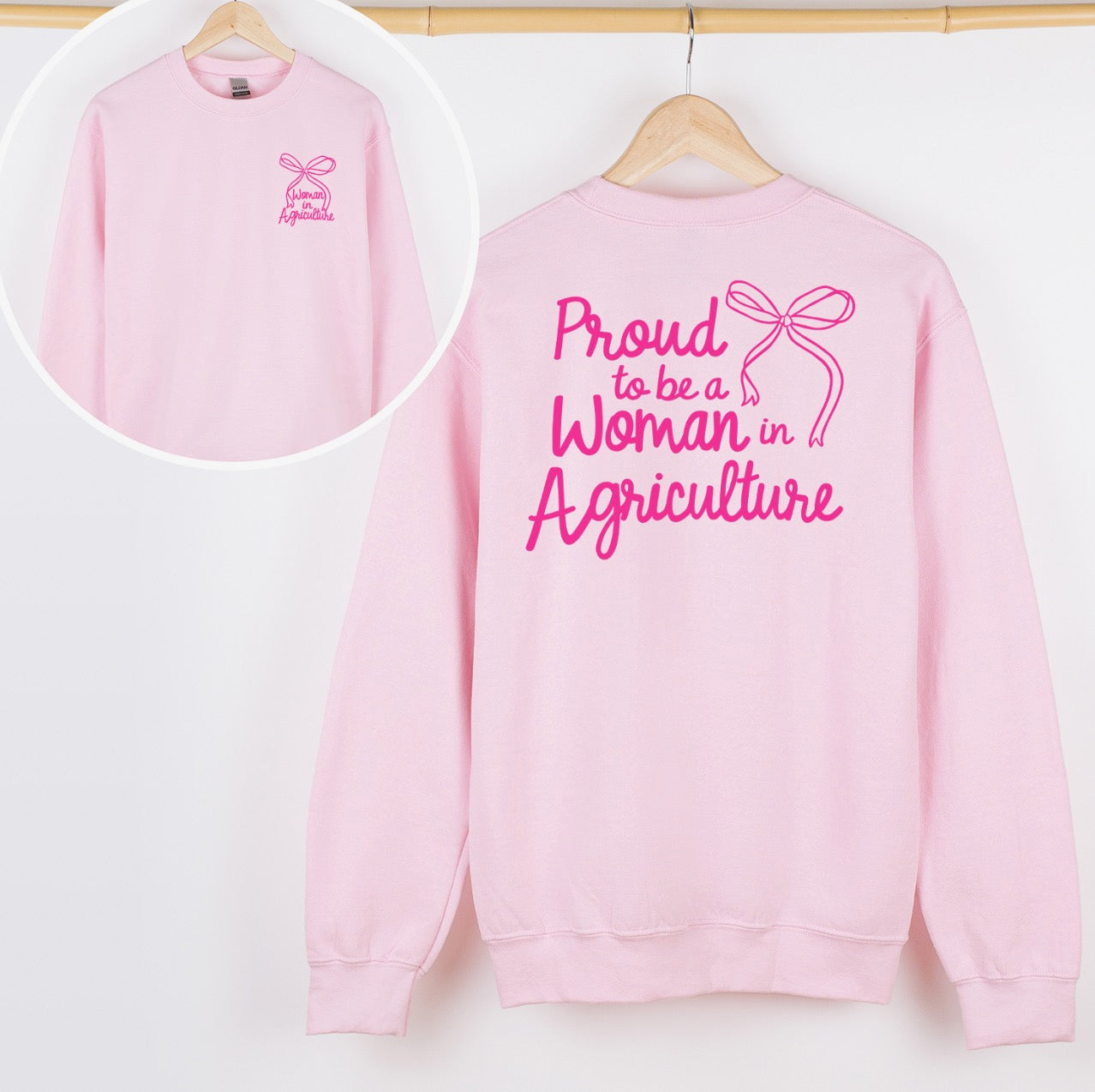 Proud to be a woman in ag bow pink ink – Front & Back - Crewneck – Wandering Maverick Boutique